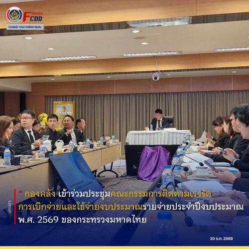 กองคลัง กรมการพัฒนาชุมชน เข้าร่วมประชุมคณะกรรมการติดตามเร่งรัดการเบิกจ่ายและใช้จ่ายงบประมาณรายจ่ายประจำปีงบประมาณ พ.ศ. 2569 ของกระทรวงมหาดไทย
